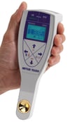 Portable device for determining refractive index and derived concentration values. Simple operation and fast results: the sample is either dripped onto the measuring cell or the instrument is immersed directly in the sample liquid. Suitable for laboratory and field measurements, e.g. in food processing or industry.