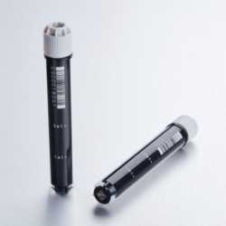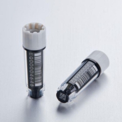 Eppendorf cryo vials with three-level coding (1D barcode, clear coding, 2D datamatrix code) for safe sample identification. Code reading is possible even up to 30 % damaged code. Up to 96 pre-labeled vials, pre-racked and pre-capped. Twistlock bottom for one-handed capping and uncapping of screw caps. Data processing software is optionally available, further information on request.