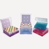 Manufactured from polycarbonate with high mechanical strength and high temperature resistance between -196 to +121°C. Uniquely designed to carry 81 cryo tubes in 9 x 9 array "Hedgehog" designed tube compartments holds the tube in their position firmly. Unique design with vent and drainage holes guarantees best, efficient air circulation. Forward slope base ensures quick visual orientation. Easily stackable for reducing storage space. Hinged lid with built-in stop allows easy one-handed access to tubes. Clear box lid enables easy identification of box content and protects the tubes from dust, moisture and other environmental effects. Alphanumerical index both on tube rows and the lid enables easy identification of tube positions. Box is supplied together with a disposable forceps, made from ABS, with fine end for easy handling and fast removal of tubes.