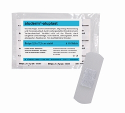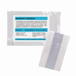 The aluderm® wound pad is coated with aluminium. aluderm®-aluplast does not stick to the wound, is highly absorbent and supportes skin formation and healing.