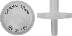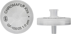 Inert Filter, nominal pore size 1µm, allows higher flow rates than smaller pore filters. For solutions with high loads of particulate matter or for highly viscous solutions (e. g. soil samples, fermentation broths) as prefilters for other CHROMAFIL® filters, they prevent plugging of the membrane.